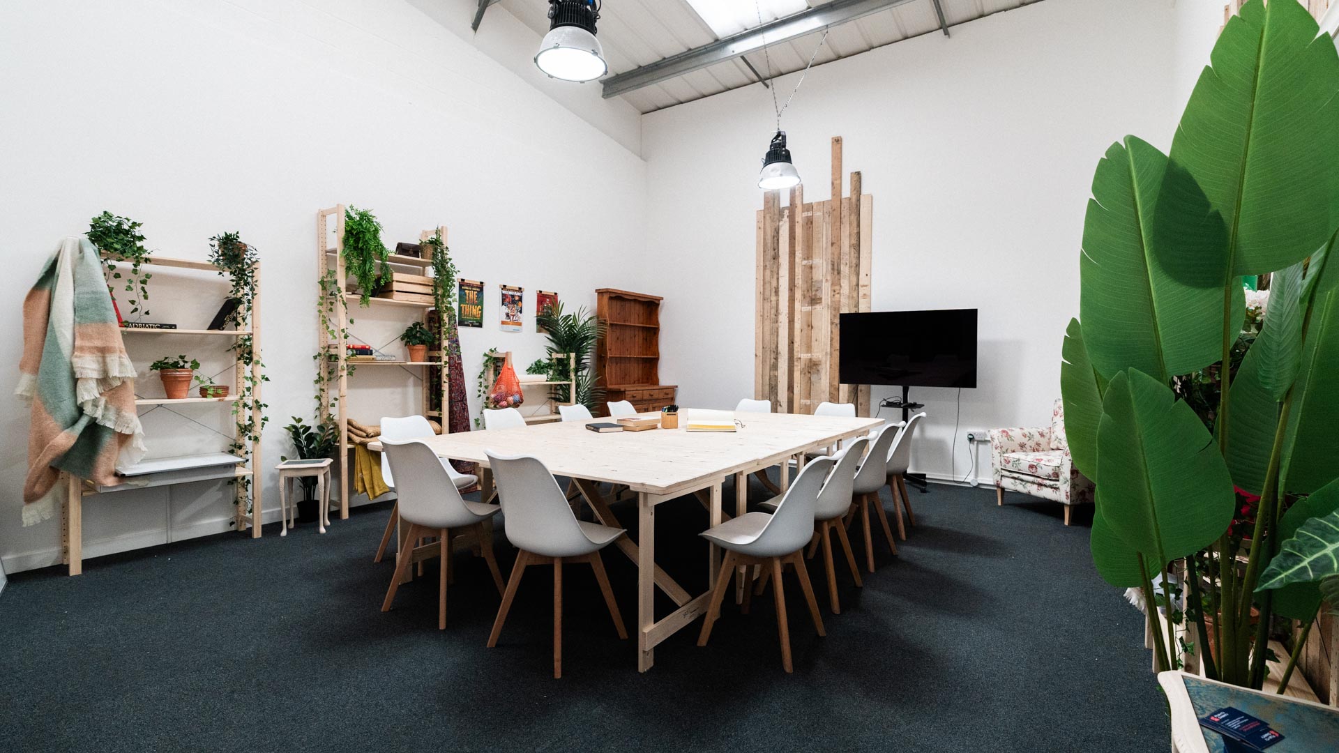 We've three production office spaces able to host up to 45 desks. Ash can comfortably sit 15-30 in a classroom, boardroom or desk layout, whilst Birch and Cedar can accommodate 5-8 people each.